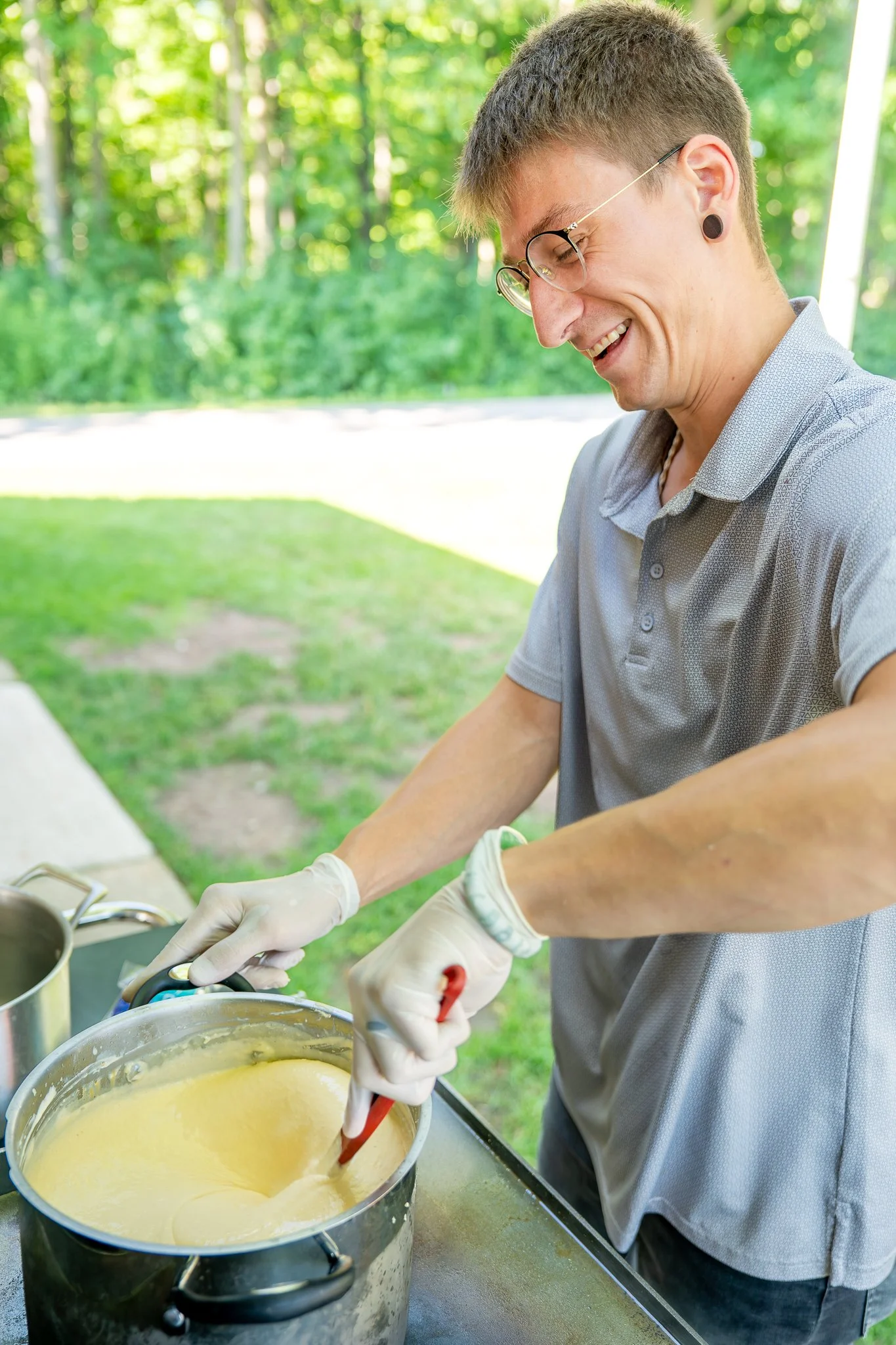 Chef Abbey is our sous chef, working hand in hand in the kitchen with Chef Ross, as well as handling the visual side of things. She grew up cooking and canning with her mom, and continued to learn cooking beside Chef Ross for the past decade. Everyone agrees, her jokes are much funnier than his. Her favorite food is authentic chicken or pork taquitos. Outside of the kitchen, she enjoys crocheting, taking care of her plants, crafting herbal remedies and tea blends, and playing with all of our animals.