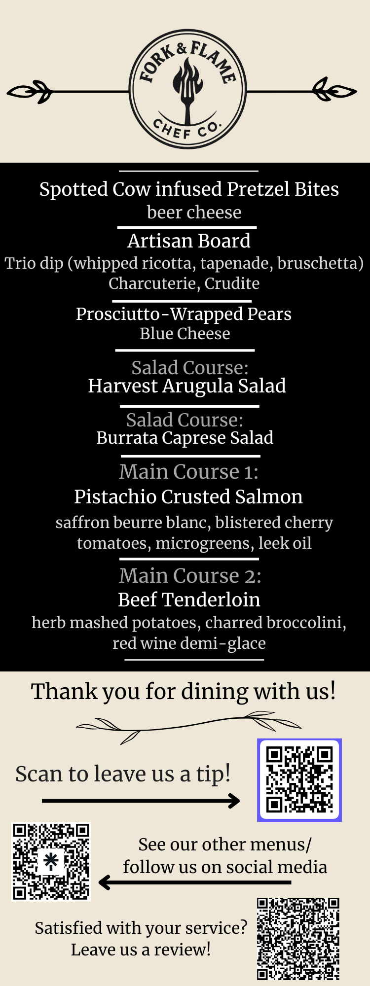 We are a husband-and-wife duo dedicated to the art of 'Yes,' these menus are merely starting points. Your specific palate is our blueprint for a completely bespoke feast.